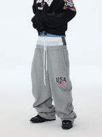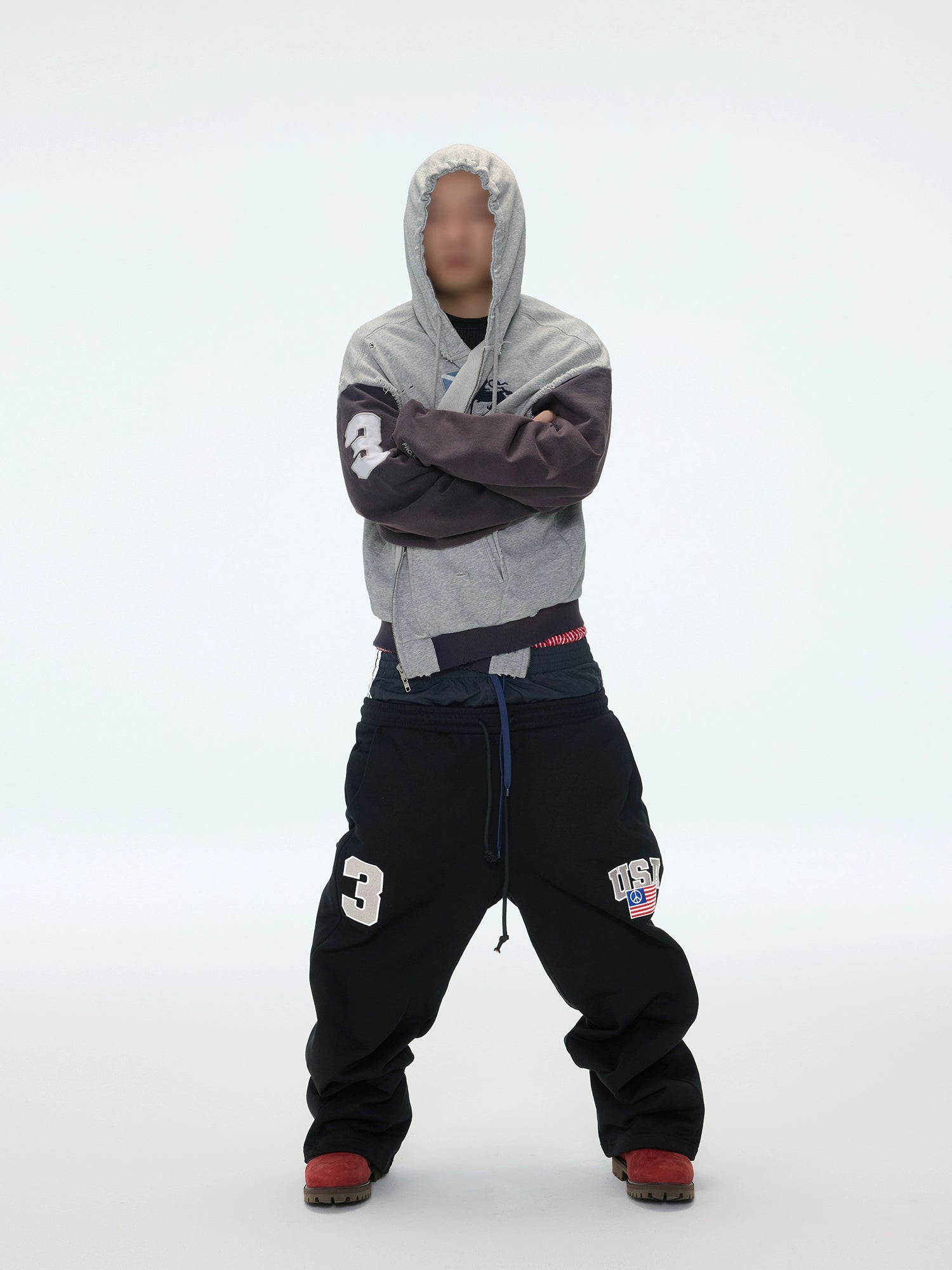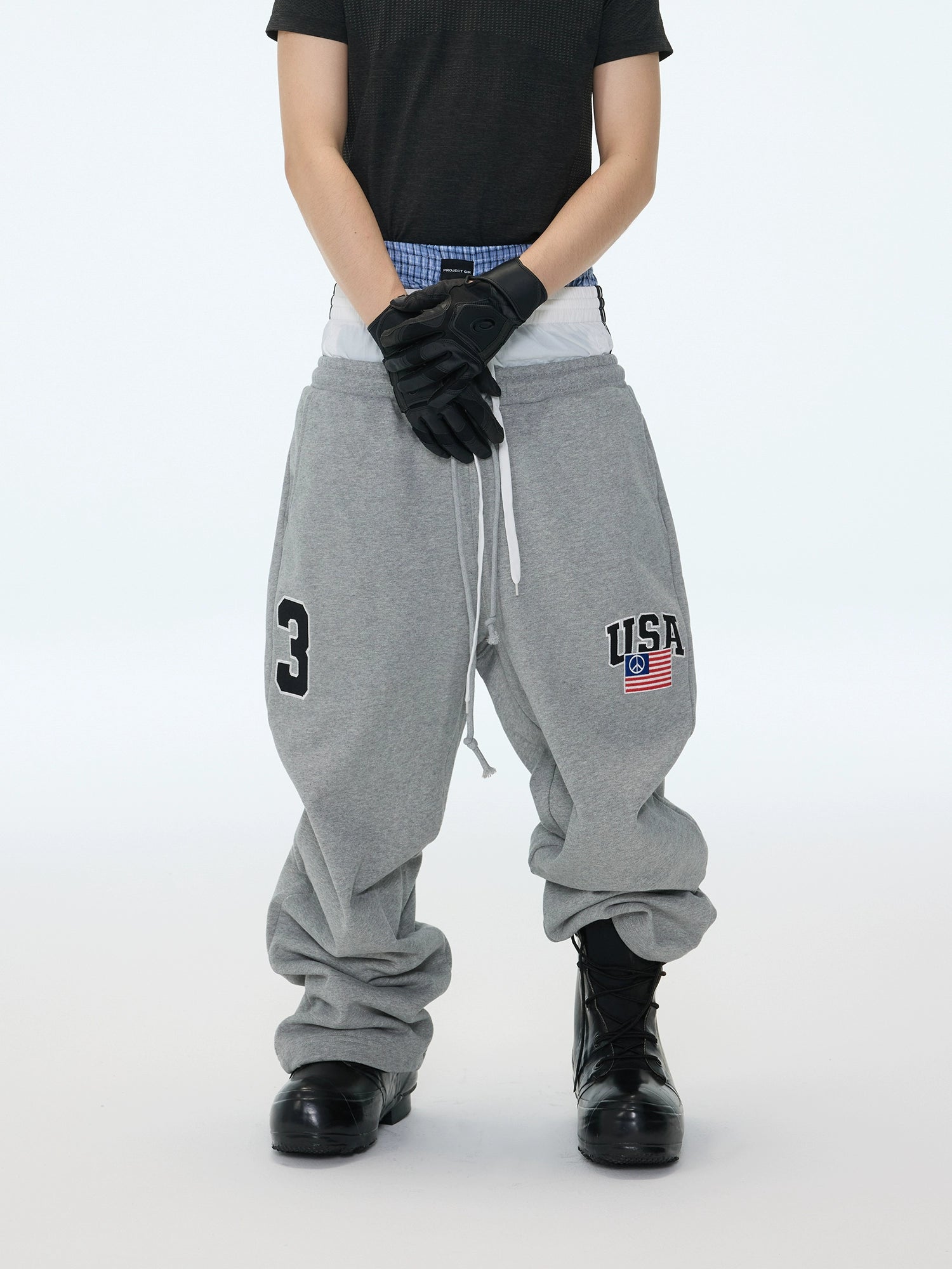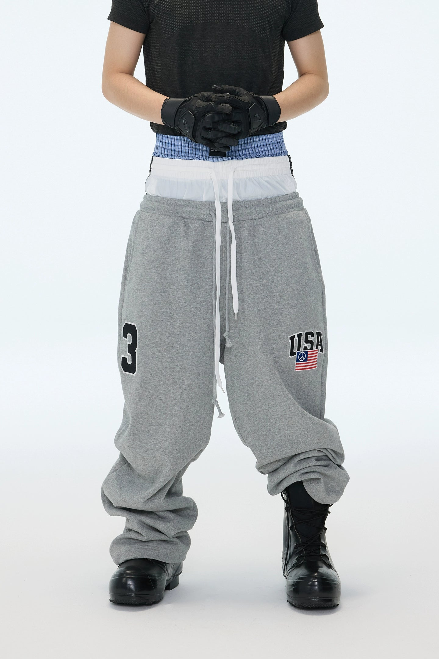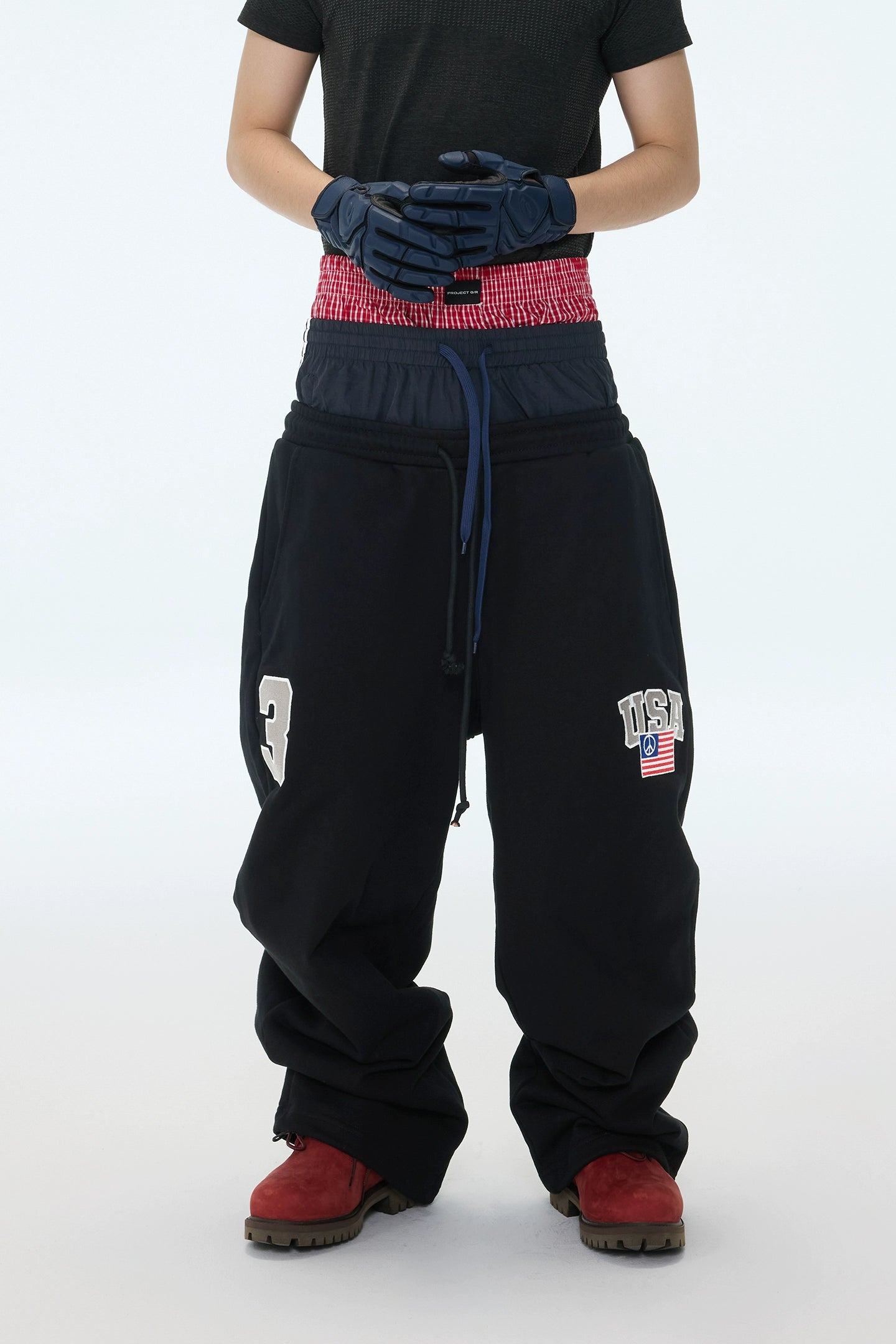 【ASTT】Three-Waist Contrast Loose Sweatpants