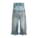 【ASTT】Dual-Waist Frayed Hem Baggy Jeans