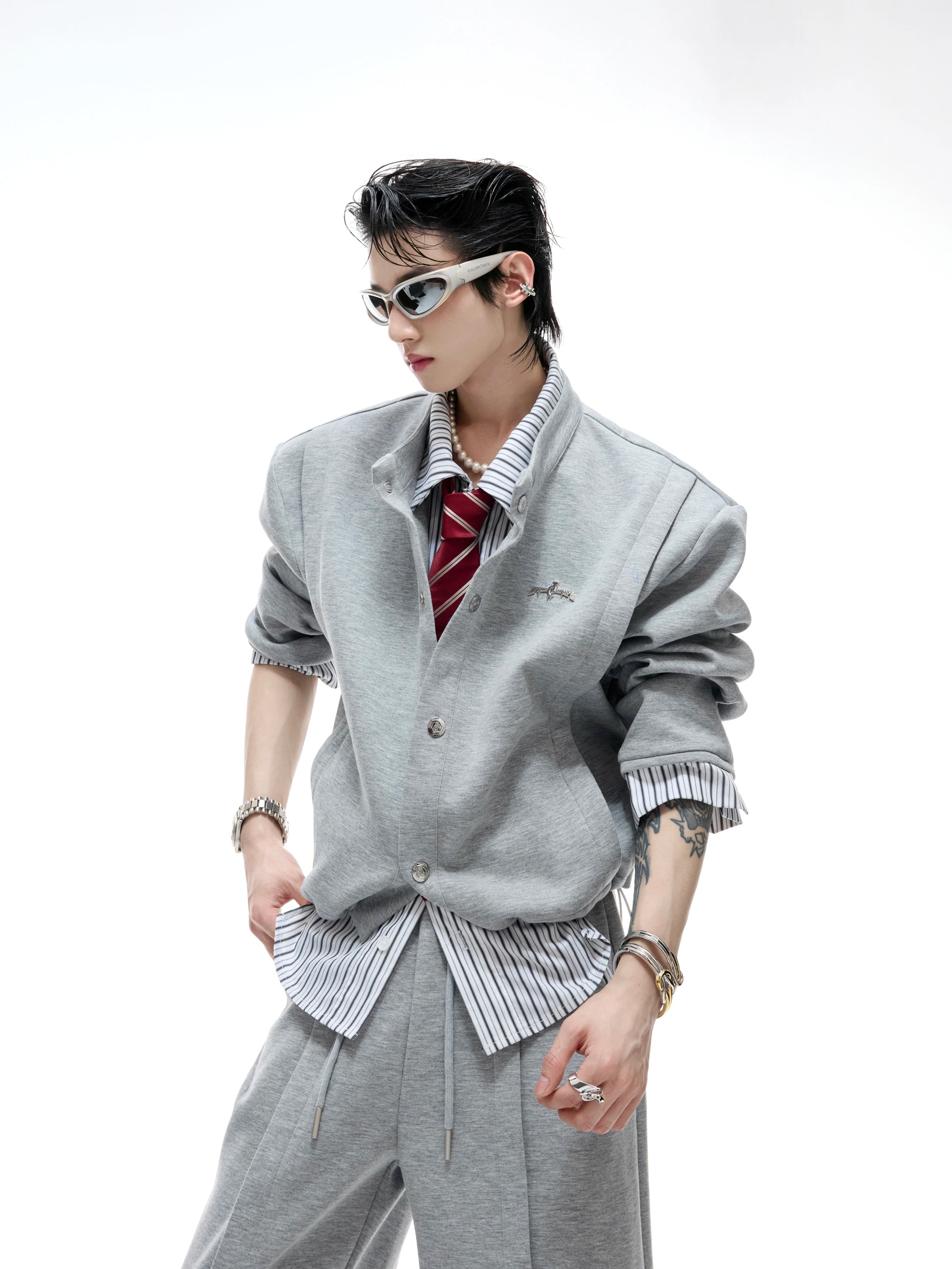 【ARGUECULTURE】Striped Shirt Layered Cardigan Set