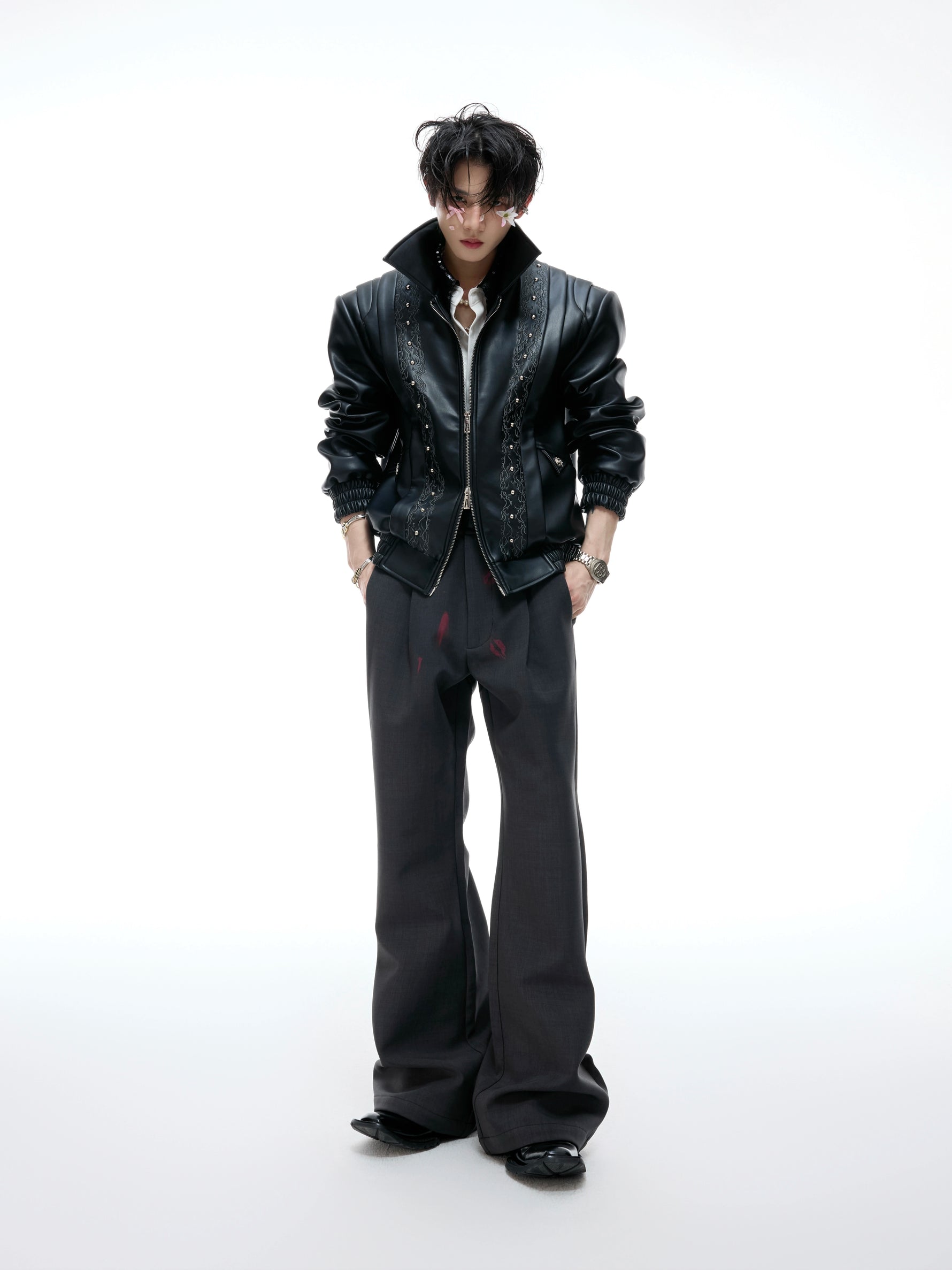 【ARGUECULTURE】Vine Pattern Embroidered Short Leather Jacket