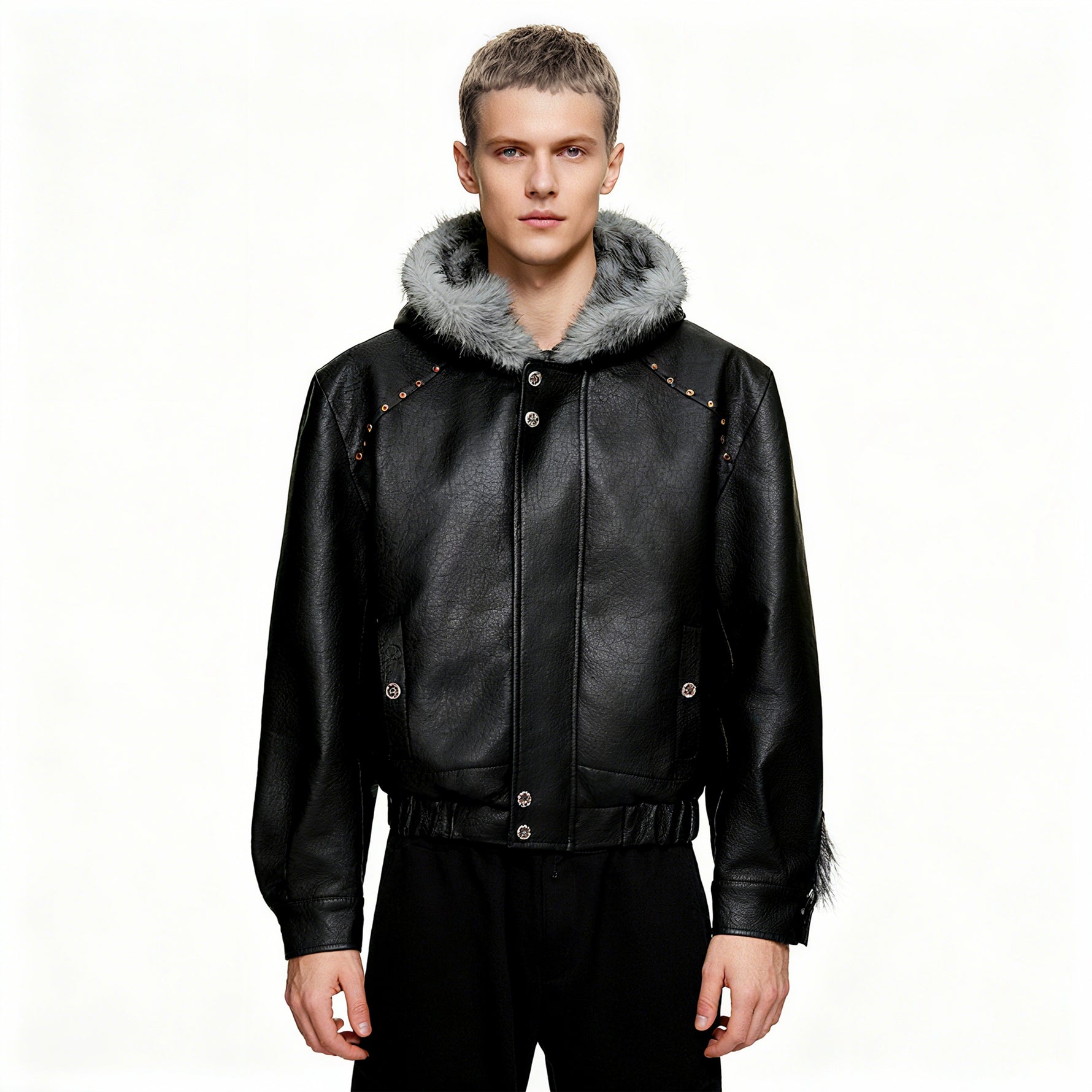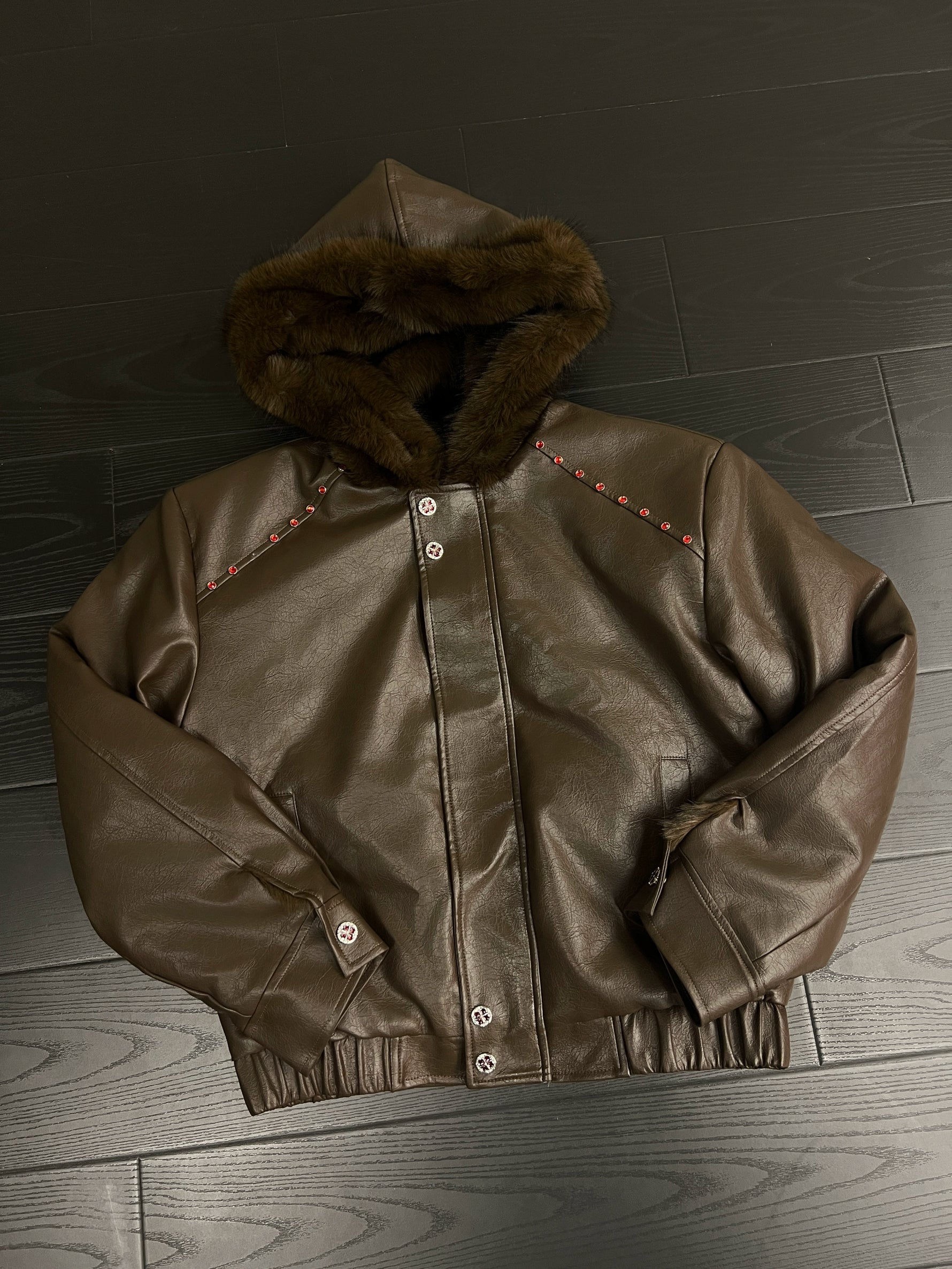 【ARGUECULTURE】Dark Spine Hooded Leather Jacket